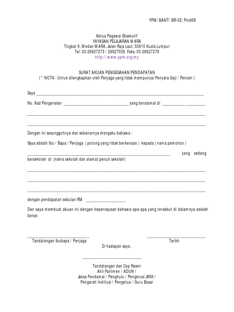 Doc surat akuan pengesahan pendapatan mohd rozali mohd pozi academia edu. Borang permohonan dan dokumen berkaitan hendaklah dimuat naik upload ke link permohonan yang disediakan. Contoh surat perakuan pendapat ibubapa bekerja sendiri.